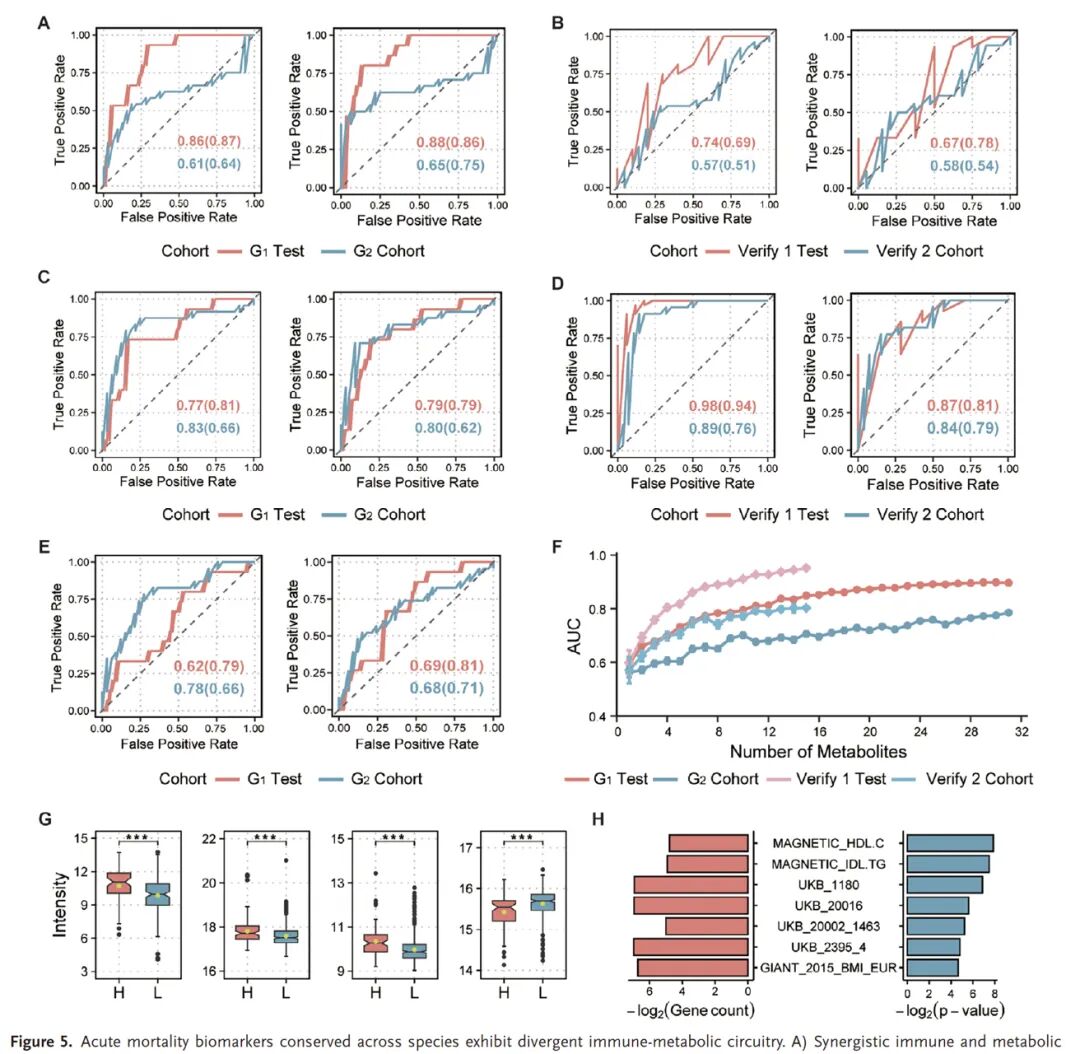 Figure 5. 跨物种保守的急性死亡率生物标志物呈现差异化的免疫-代谢耦合