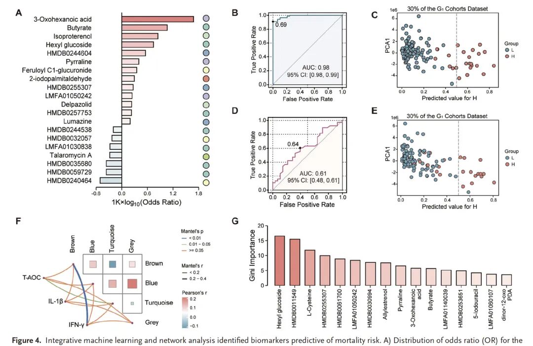 Figure 4. 整合机器学习与网络分析鉴定死亡率风险的预测性生物标志物