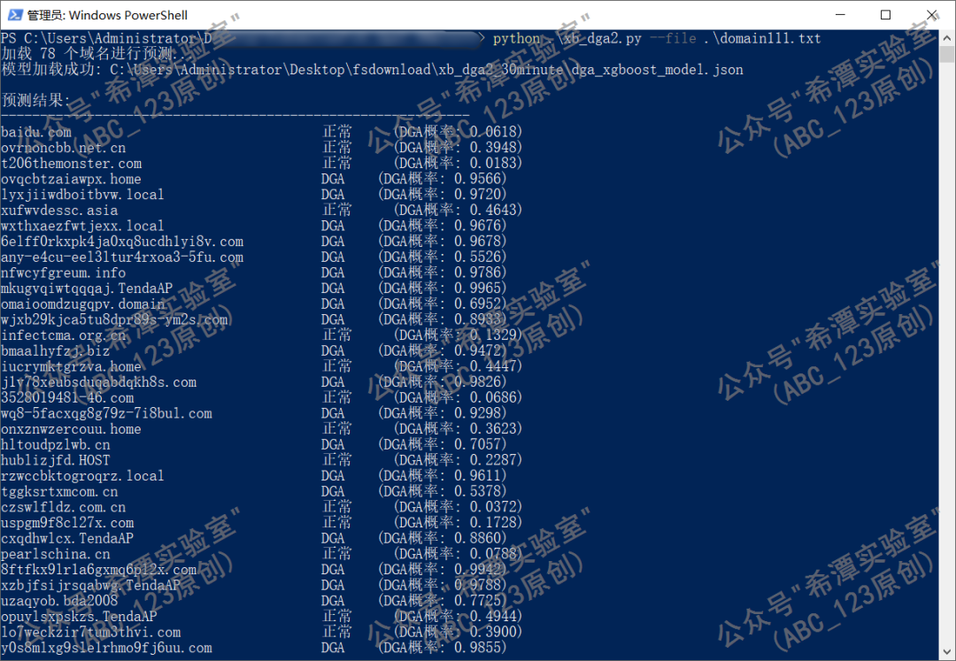经过各种调参之后,使用GPU云环境训练模型,然后自己制作的一个DGA域名的列表,发现识别率还是不错的。1. n-gram 相当于是捕网,它把域名打碎,捕获各种长度为 2 到 5 的字符碎片;TF-IDF 是筛子,过滤掉那些到处都有的普通碎片,高亮保留那些能显著区分“正常”与“恶意”的独特碎片,并将它们转化为数值矩阵供 XGBoost 训练。2. 大家有好的建议,欢迎给我留言。