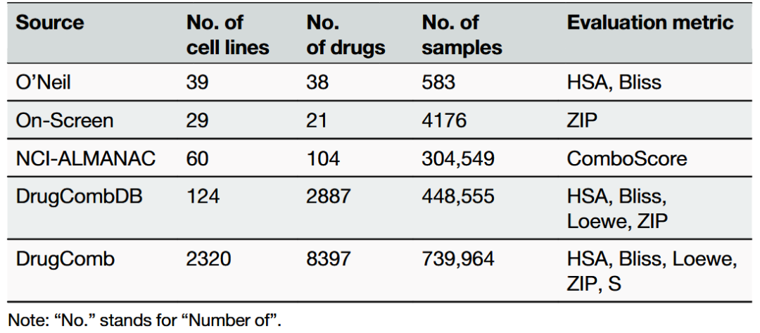 多种常用的药物协同数据集涵盖了在多种癌症细胞系中测试的数千种药物组合,并经过专门整理,用于训练基于深度学习的预测模型。关于这些数据集的详细信息见表1。这些全面且高度整合的药物协同数据集为构建高可靠性的深度学习预测模型提供了宝贵资源,并加速了用于癌症治疗的新型协同药物组合的发现。
