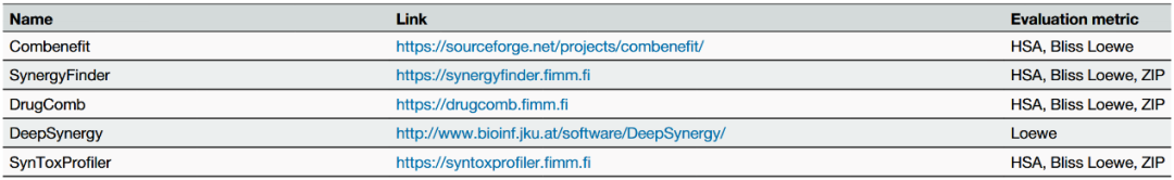 深度学习预测模型依赖于多种资源捕获药物之间复杂的关系与模式。近年来,许多专注于药物协同研究的科研机构相继开发了协同效应评价指标、数据库、交互式软件工具以及网络平台,用于促进协同药物组合的发现与分析。