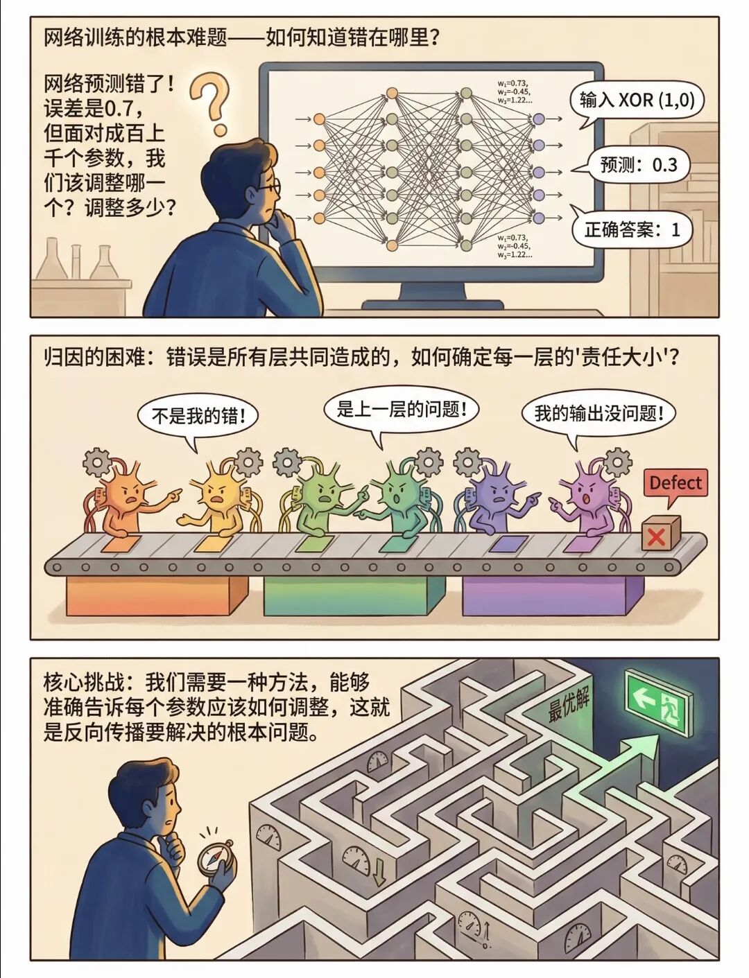 一、深度学习的“灵魂拷问”:谁该为误差负责?