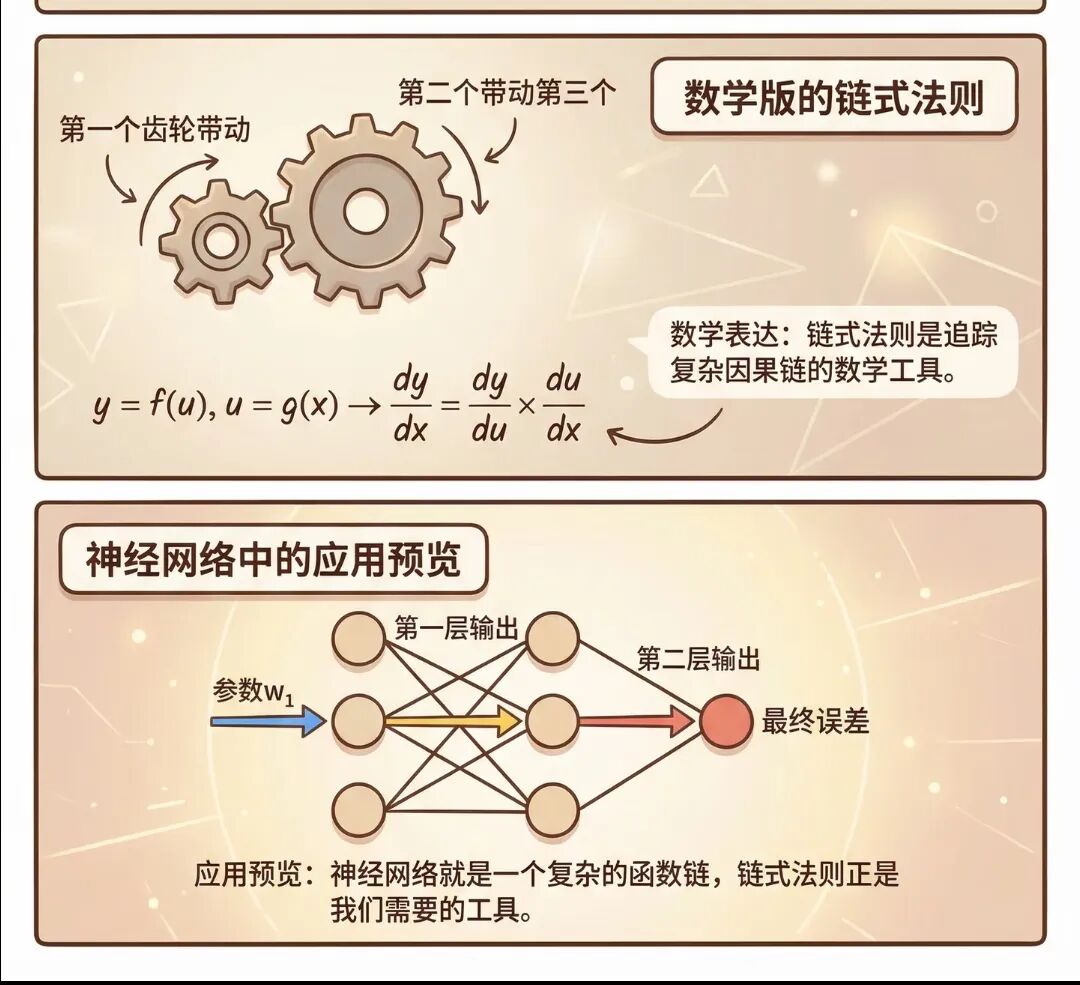反向传播算法的核心数学支撑,是微积分中的链式法则。这一法则看似简单,却为复杂函数的求导提供了革命性的思路:一个复合函数的导数,可以分解为其组成部分的局部导数的乘积。