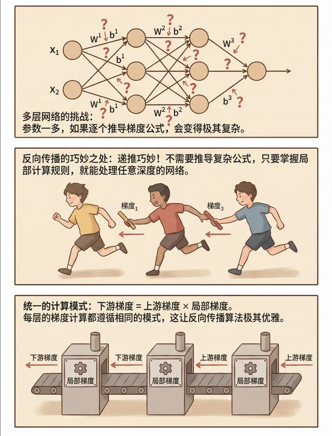 反向传播算法的价值,不仅在于它解决了深度神经网络的训练问题,更在于它提供了一种系统性的思维方式:将复杂的全局优化问题,分解为可追溯、可量化的局部因果链,用统一的规则解决复杂的归因问题。