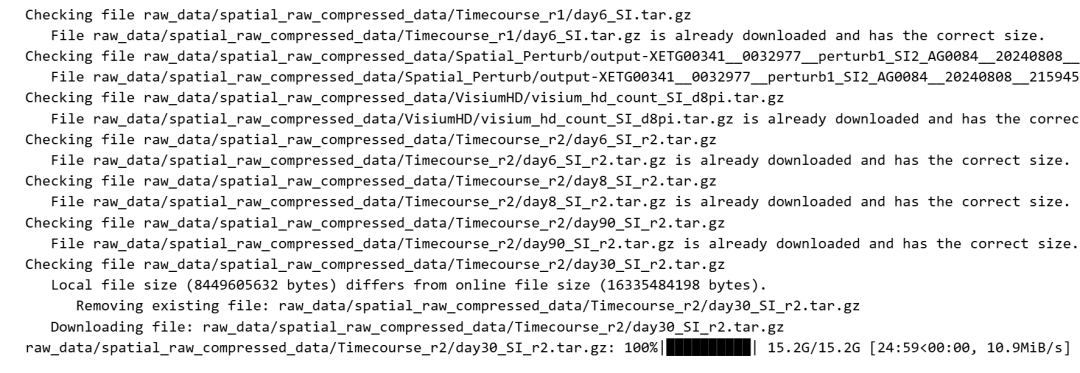 昨天,我们学习了这篇2025 年1月22号发表在Nature杂志上的文献,标题为《Tissue-resident memory CD8 T cell diversity is spatiotemporally imprinted》,里面给了代码和处理好的数据,但是数据呢,那是相当大啊,而且还有很多文件。如下,下载可能是个难题!