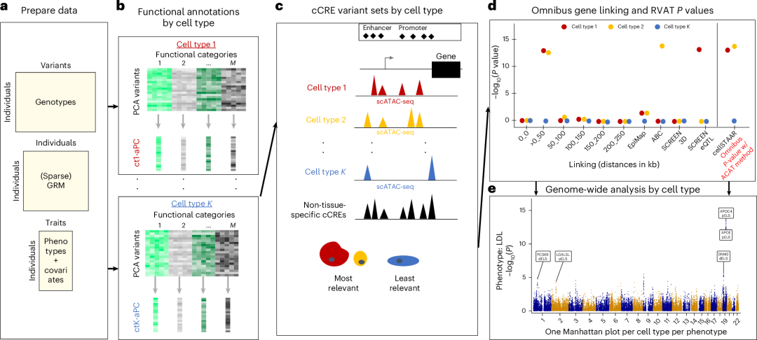 cellSTAAR的核心创新在于:它将全基因组测序与单细胞染色质可及性(scATAC-seq)数据整合,构建出细胞类型特异性的功能注释和调控元件库。研究团队指出,许多非编码变异的作用依赖于所在细胞类型,而传统的“混合样本”检测方式往往掩盖了这些关键差异。cellSTAAR则能“精准聚焦”,根据每种细胞的活性区域,为每个变异打上细胞类型的“功能标签”,显著提升了统计检测的灵敏度和生物学解释力。