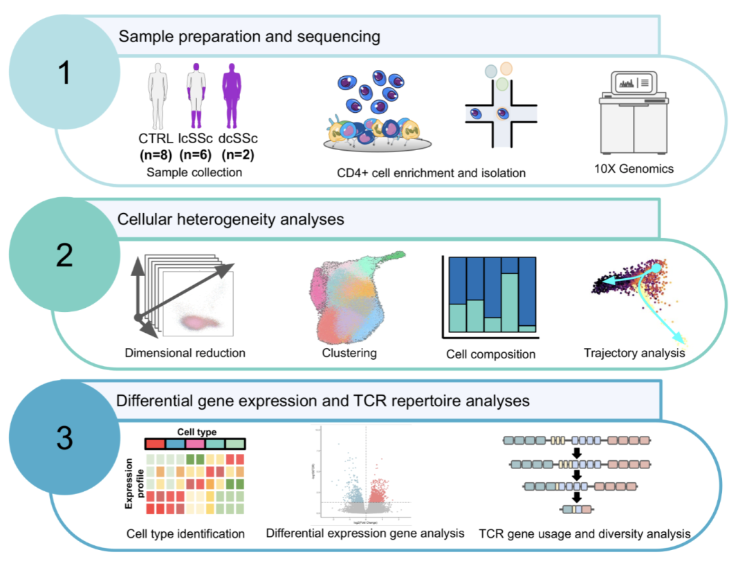 近日,西班牙格拉纳达、德国柏林及美国哈佛大学等多家研究机构联合发布了一项前沿成果,首次用单细胞RNA测序技术深入分析系统性硬化症(Systemic sclerosis,SSc)患者的外周血CD4+ T细胞,揭示了该疾病中免疫调节失衡的关键分子机制。这项发现不仅拓展了我们对自身免疫病的认识,还为未来精准治疗打开了新思路。