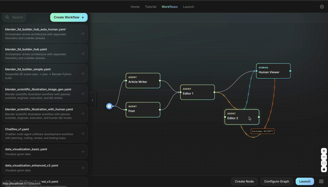 ChatDev 2.0 的框架将控制系统与数据系统解耦,支持循环(如自我反思)和无限嵌套(如子图)的图结构。平台内置了用于3D建模、游戏开发和深度研究等多种场景的开箱即用工作流模板,并为开发者提供了 Python SDK 用于自动化和批量处理,同时整个项目继续保持开源。