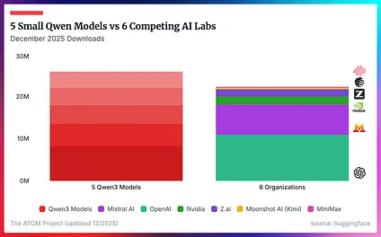 Qwen3 的 五个 主要版本( 0.6B 、 1.7B 、 4B 、 8B 及 4B-Instruct-2507 )的下载量就超过了 OpenAI 、