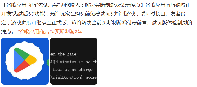不过,买断制既有优点也有缺点 —— 用户在付费前甚至无法试玩游戏。谷歌似乎有意解决这一痛点,据悉应用商店即将为付费买断制游戏推出全新的“先试后买”功能。