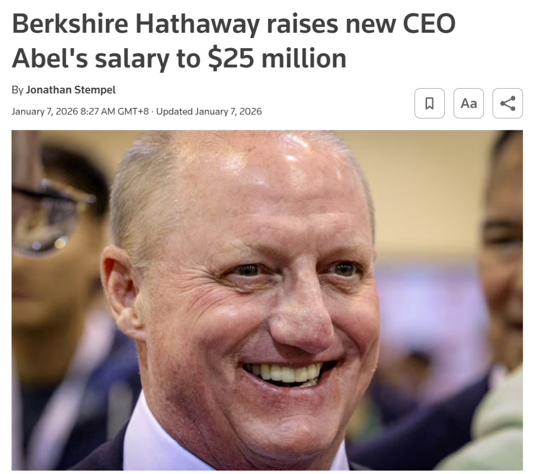 1 月 9 日消息,伯克希尔 - 哈撒韦公司在当地时间周二提交的一份文件中披露,公司首席执行官格雷格・阿贝尔的年度现金薪酬将达到 2500 万美元,这一数字远超其前任沃伦・巴菲特数十年来担任该职务时 10 万美元的年薪。