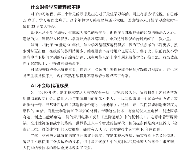 随着技术迭代与用户需求升级,这本书也始终紧跟行业步伐,通过版本更新保持鲜活生命力——从第1版的理念奠基,到第2版进一步优化教学逻辑、跟上Python3的步伐、巩固 “零基础友好” 的核心优势。