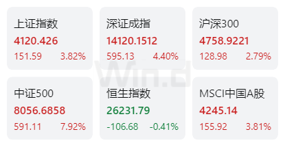中国市场方面:上证指数上涨3.82%,深证成指上涨4.40%,沪深300指数上涨2.79%,中证500指数上涨7.92%;恒生指数表现较弱,累计下跌0.41%。