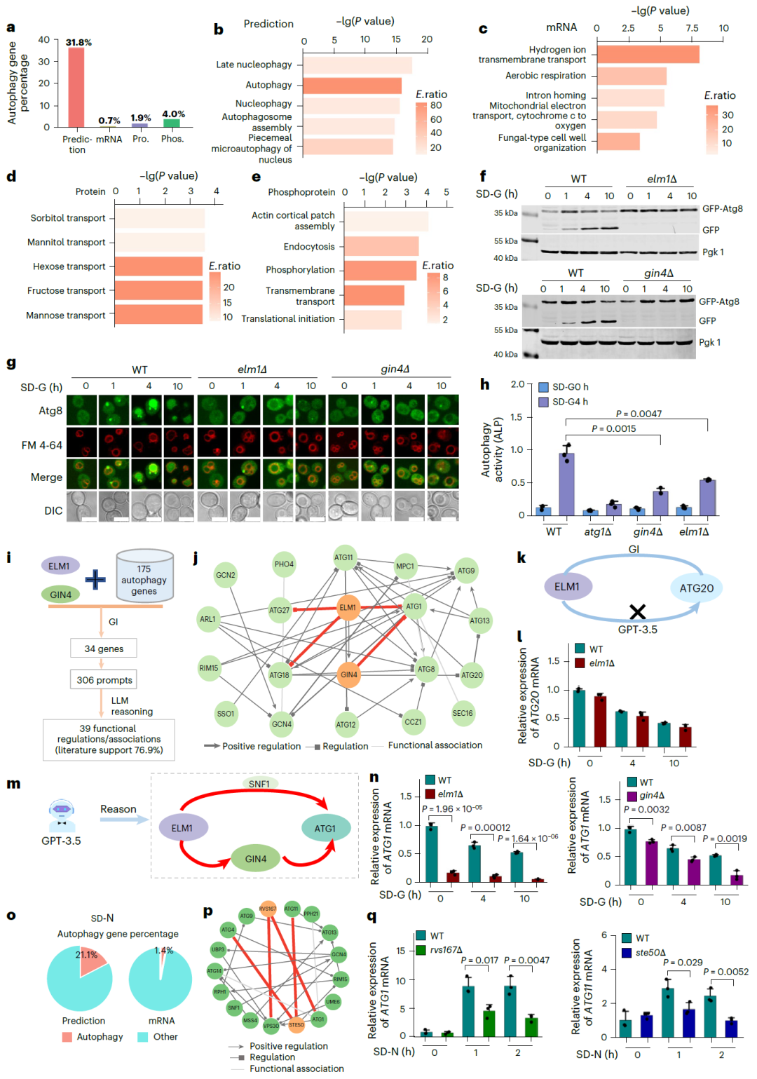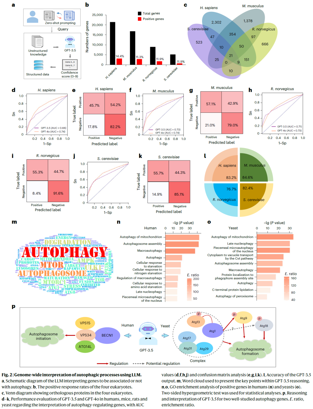 图 2:基于大语言模型的自噬过程全基因组尺度解读。