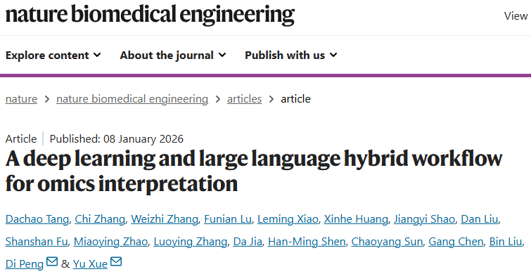 Tang, D., Zhang, C., Zhang, W. et al. A deep learning and large language hybrid workflow for omics interpretation. Nat. Biomed. Eng (2026).