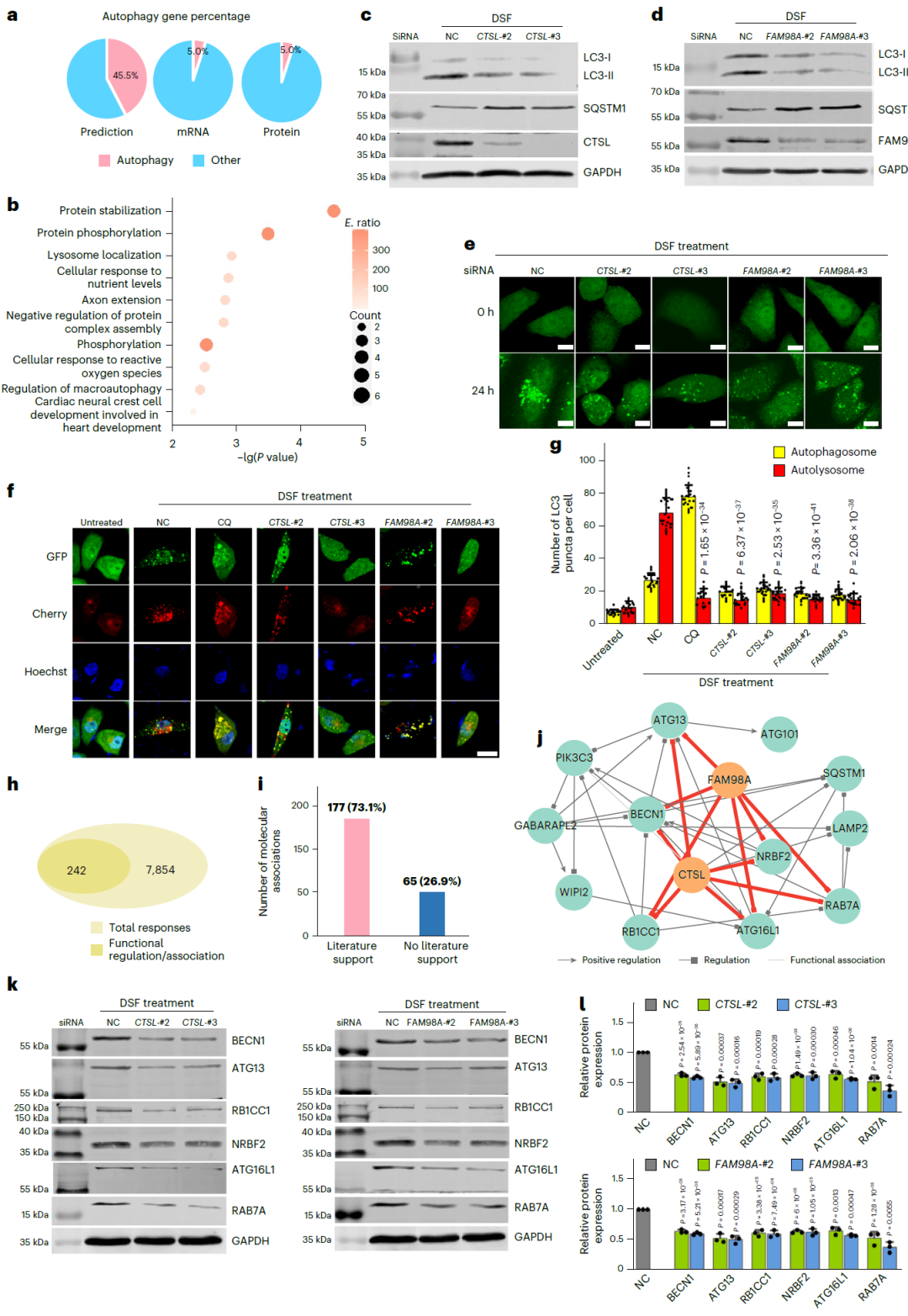 图 5:FAM98A 与 CTSL 在二硫仑(DSF)诱导的自噬激活中发挥关键作用。