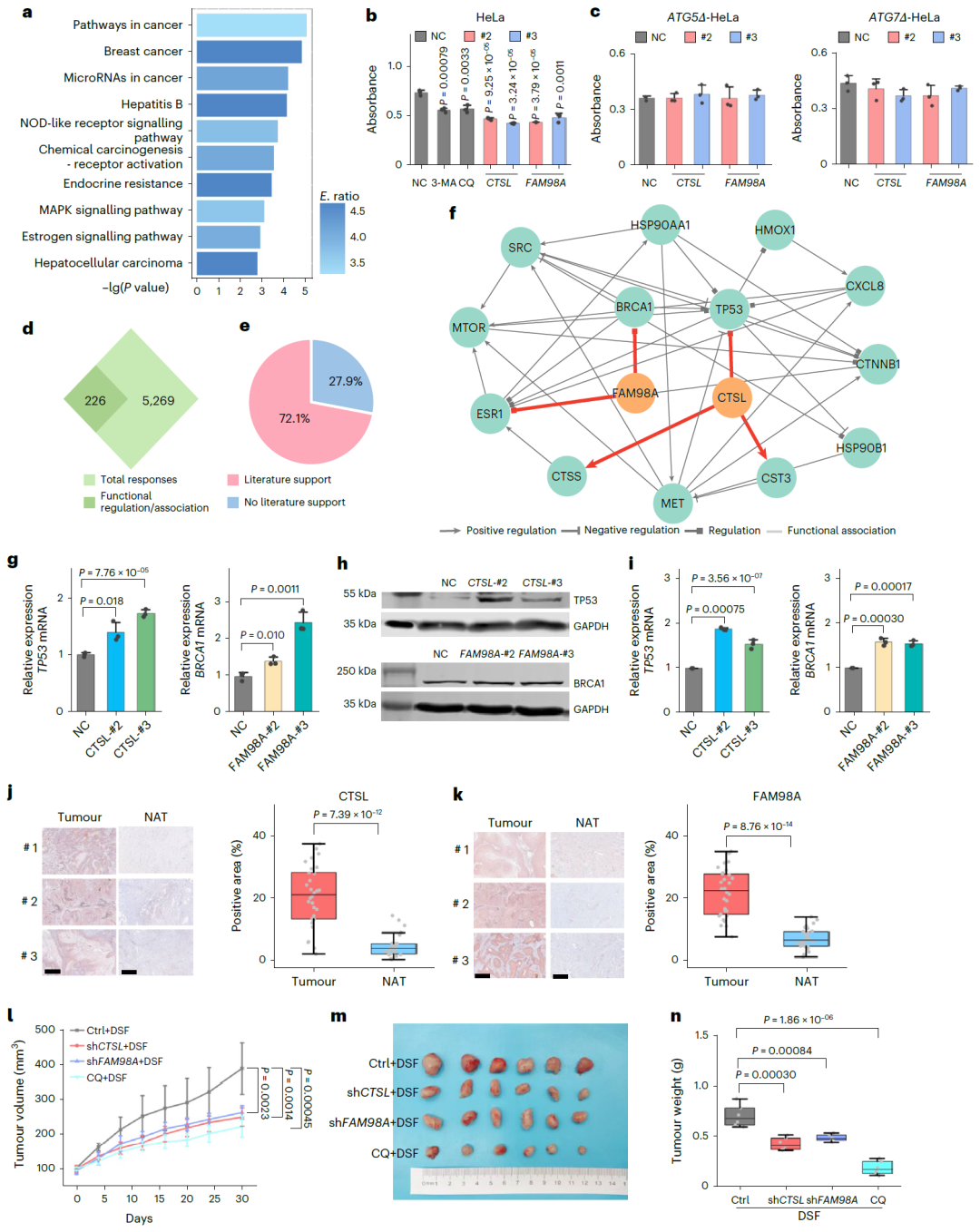 图 6:CTSL 与 FAM98A 通过自噬通路促进肿瘤细胞存活。
