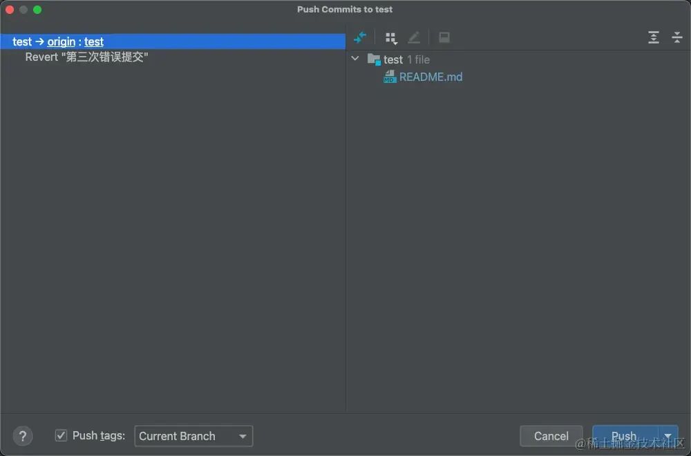 后续,只需要我们将本次改动push到远程,即可完成一次这次回退操作,
