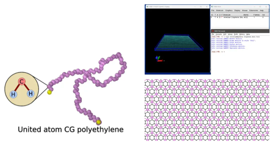 VMD建模:聚乙烯UA模型和石墨烯粗粒化模