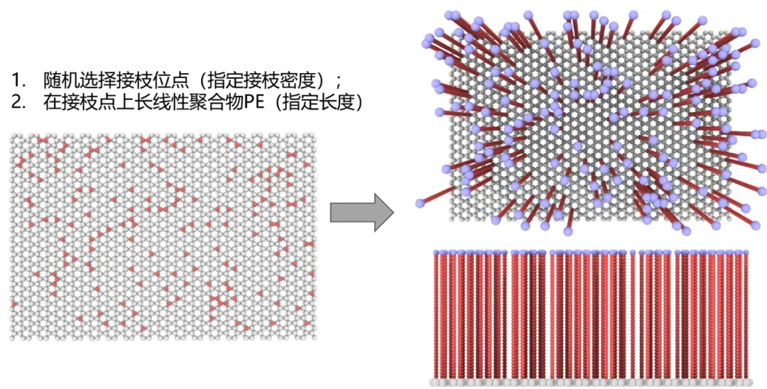 2. Python MDAnalysis建模石墨烯表面的UA聚乙烯接枝,指定接枝密度和接枝长度;
