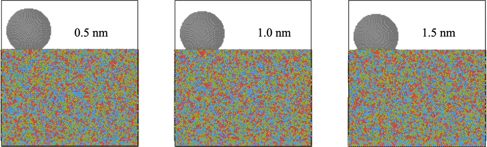 纳米压头的初步下压(不同的初始压入深度):