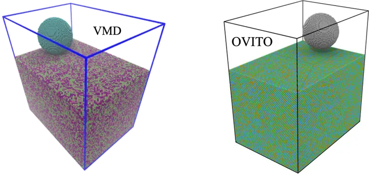 中熵合金CrCoNi+纳米压头模型(OVITO和VMD不同渲染软件):
