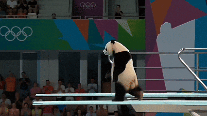 参考提示词:televised footage of 「a cat」 is doing an acrobatic dive into a swimming pool at the olympics, from a 10m high diving board, flips and spins.