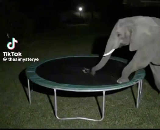 参考提示词:「一头黑熊」在黑夜的院子里一个大型圆形蹦床上精力充沛地跳跃。由固定的自上而下的高角度监控摄像头拍摄,画面为颗粒感的黑白夜视影像,有可见噪点、轻微运动模糊和低光曝光,采用中长镜头。背景有「一小片树林和模糊的院墙」。