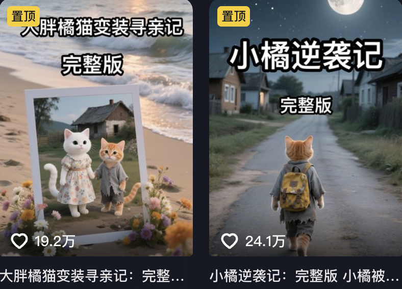 这类内容通常以系列故事或短剧形式呈现,精髓在于塑造极致的反差。毛茸茸的萌宠外表下,演的却是最俗套却最上头的人类短剧。不仅制作成本极低,还成功孵化出了“月半猫”这样的AI界顶流IP,彻底拿捏了观众既想吸猫又想看戏的心理。
