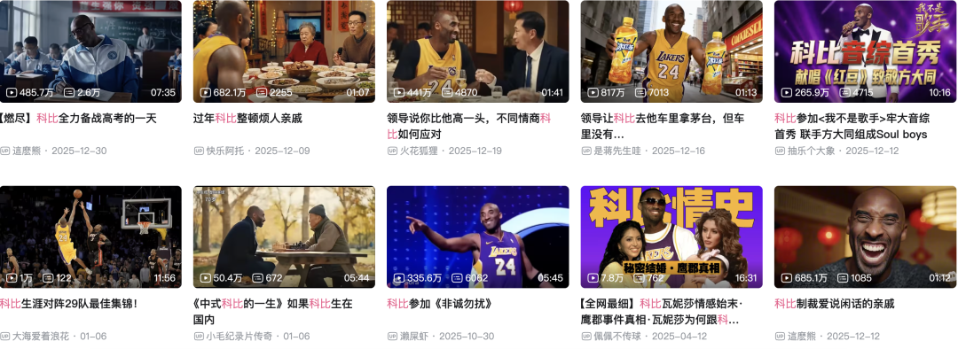 在B站、抖音等平台上,经常会出现“科比整治xxx乱象”的AI视频。身穿橙色24号球衣的科比,面对各种不合理的场景,没有过多言语,直接用经典的“肘击”开路,配上他常用的口头禅“Man!”、“What can I say?”、“Out!”