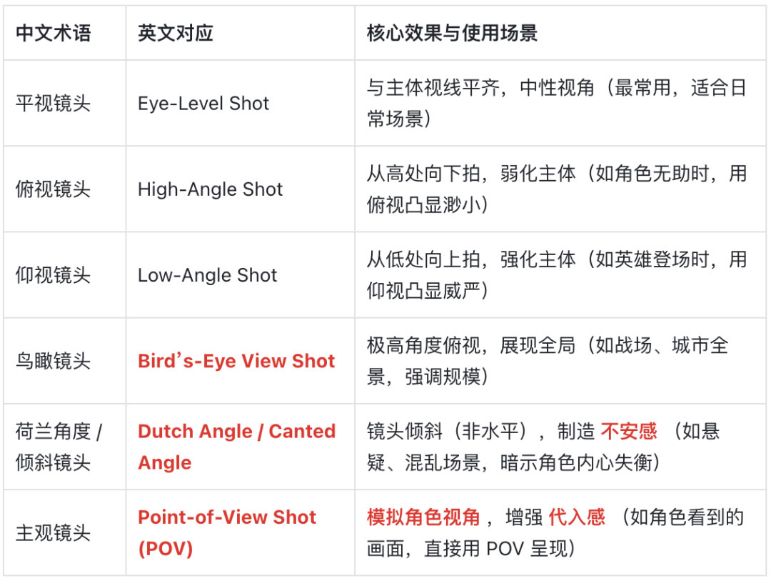 决定画面视角,影响观众对主体的感知: