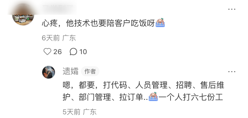 又刷了高广辉妻子的帖子。她在留言区回复网友时,多次透露丈夫身兼数职,公司不给加人手。