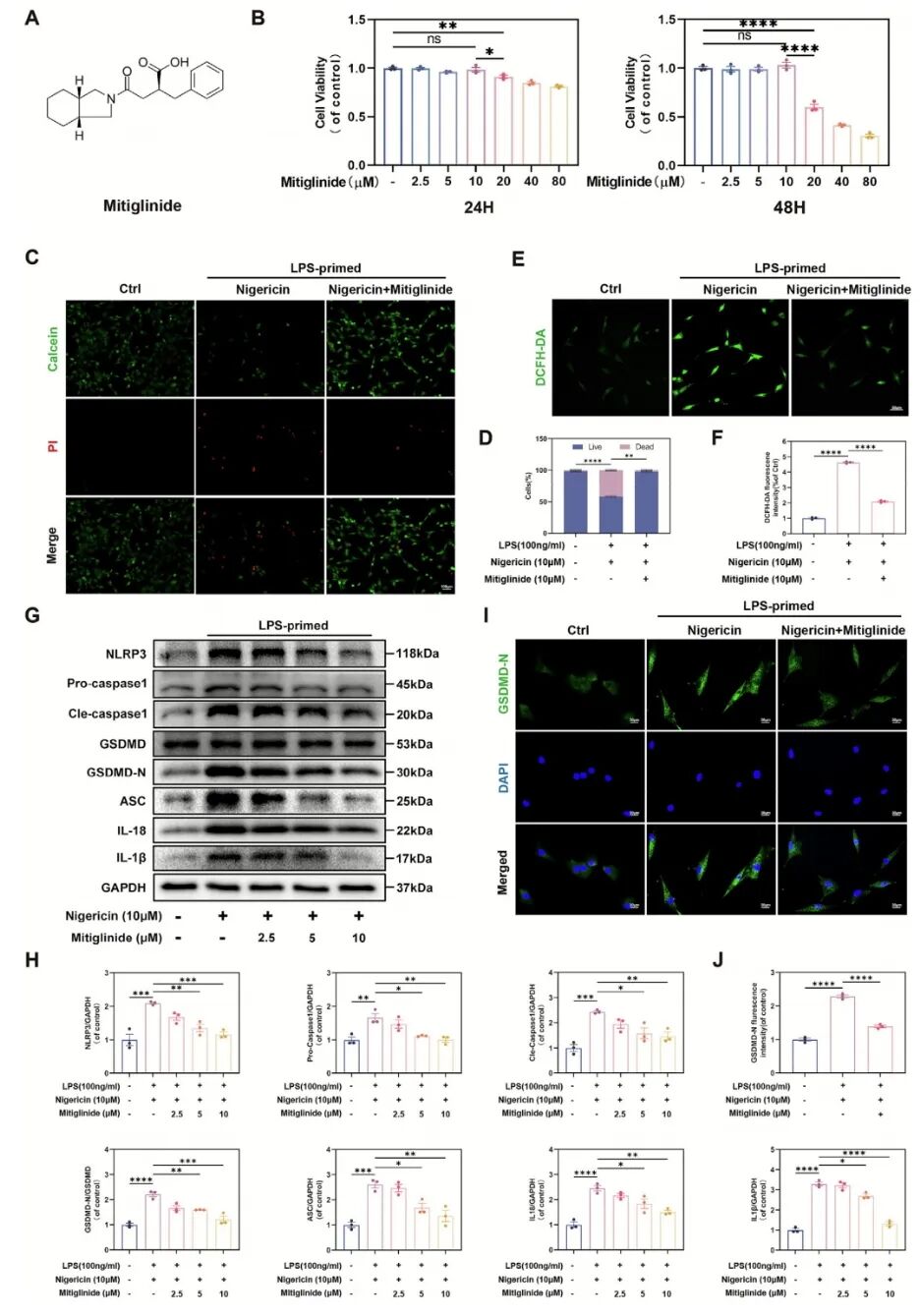 使用siRNA敲低Nrf2后,米格列奈激活HO-1、抑制活性氧和焦亡关键蛋白的能力被显著削弱。这直接证明了其对焦亡的抑制作用依赖于Nrf2。