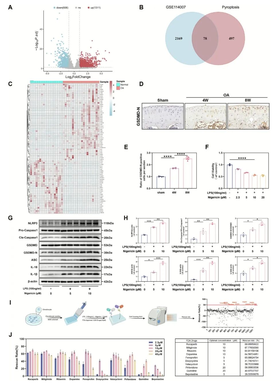 作用机制验证: 免疫组化显示,米格列奈能提升软骨中Nrf2和聚蛋白聚糖水平,同时降低GSDMD-N水平,与体外结果一致,且在主要器官中未发现明显毒性。