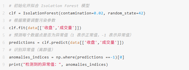 股票市场的“异常”通常指价格、成交量等指标严重偏离常态,可能由操纵、重大事件或极端波动引发。使用孤立森林进行预测主要包含以下步骤: