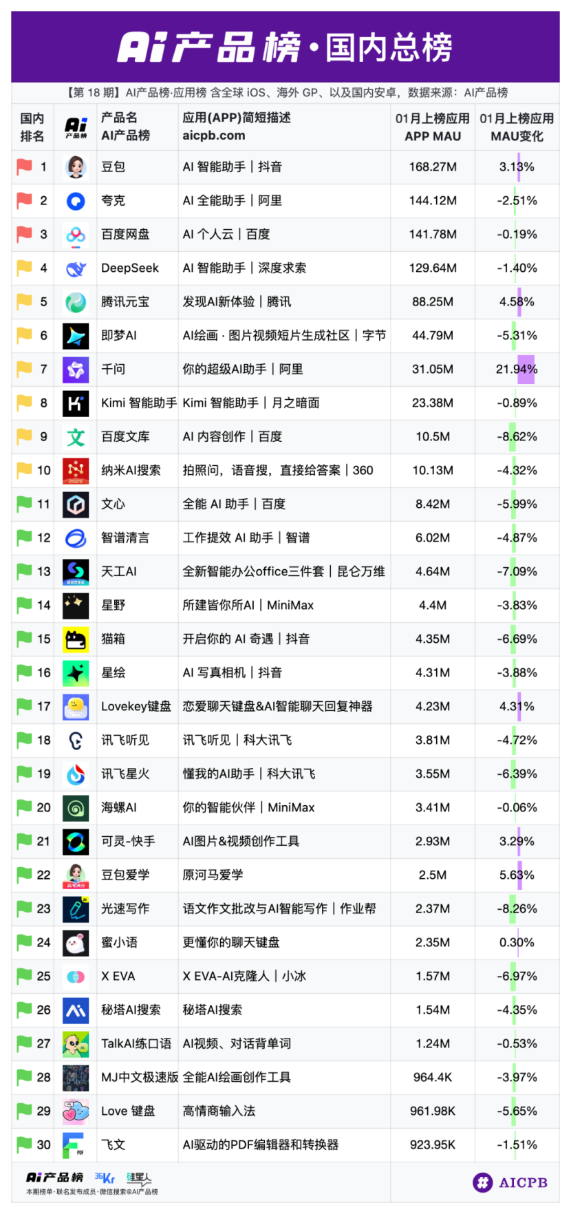 AI产品榜·应用榜(App)2026年01月榜,本文包含10