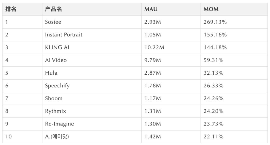 除此之外,seekee、PixVerse也在稳步上分,分别以4.26%、2.23%的环比增速实现正增长,足以看出海外市场的潜力有多香。