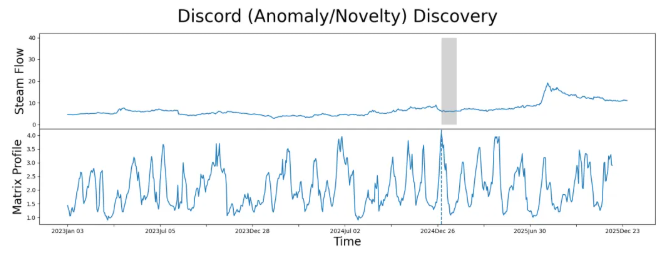 Matrix Profile 是一种高效的时间序列相似性搜索与异常检测技术,由加州河滨大学于2016年提出。其核心思想是通过计算时间序列中每个子序列与其他所有子序列的最小距离,构建一个完整的相似性图谱。