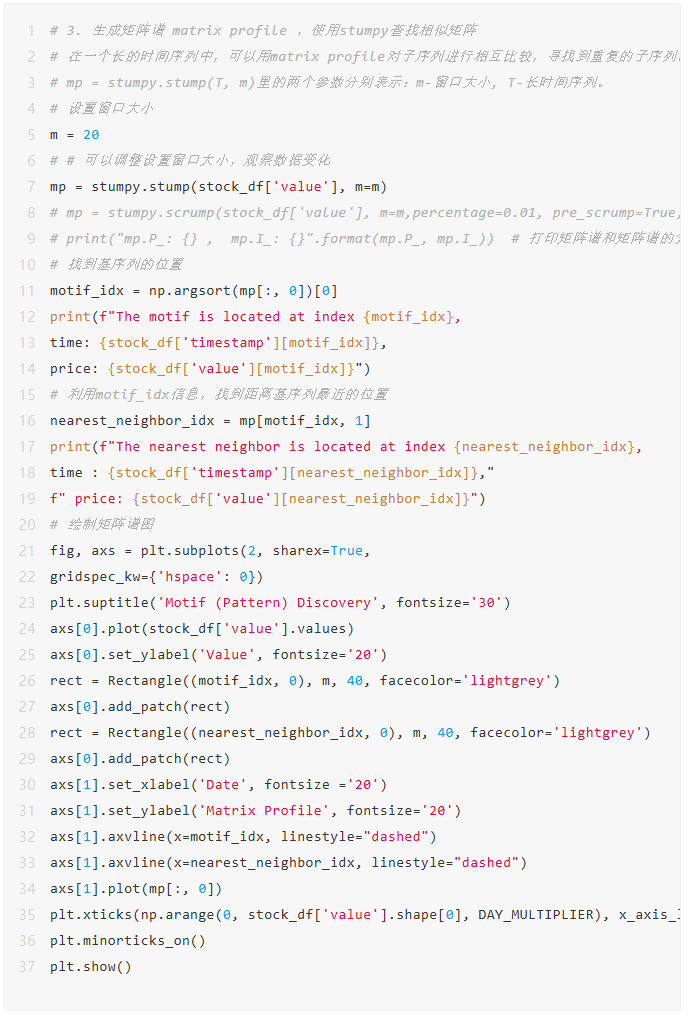 计算Matrix Profile:对历史股价序列计算每个子序列的最相似序列