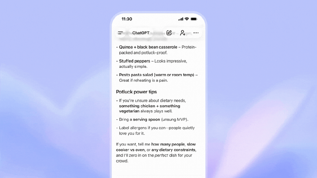 例如,当用户询问食谱或烹饪建议时,系统可能会推荐相关的食材配送或预制餐食服务。OpenAI称,将优先展示与当前对话最相关、对用户可能最有价值的广告内容。