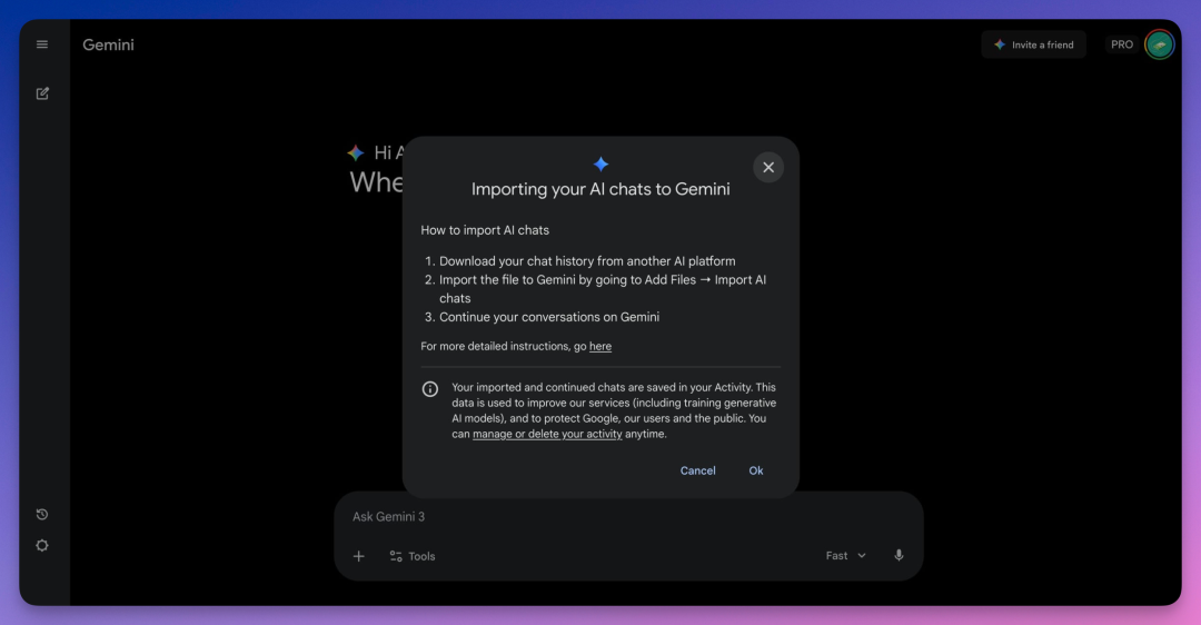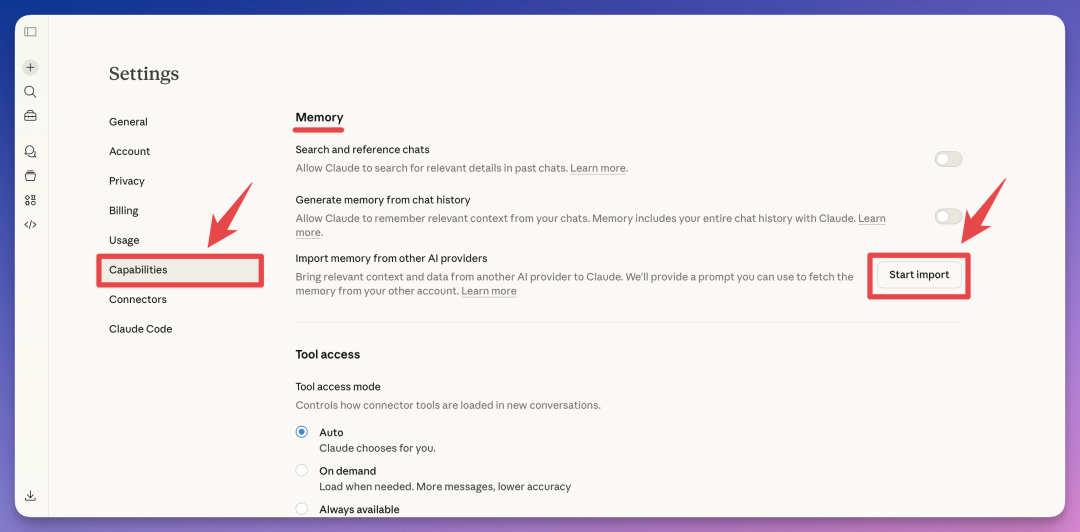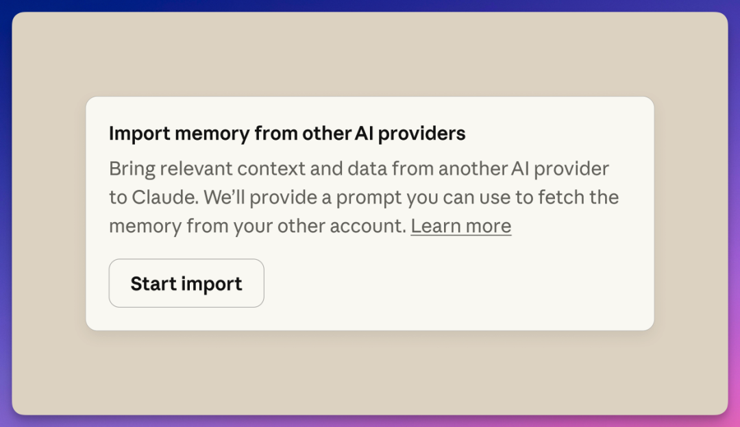 你会看到「Import memory from other AI providers」的提示,点击右边的「Start import」。