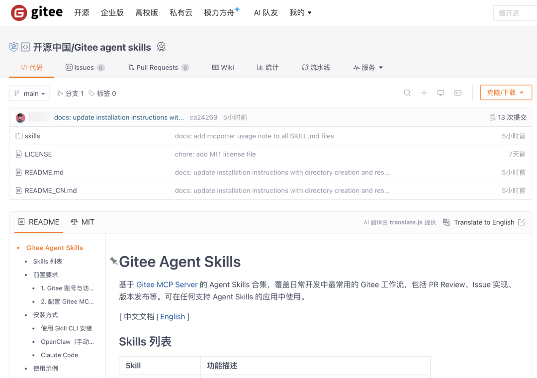 而让它具备这些 Gitee 操作能力的,就是Gitee Agent Skills。