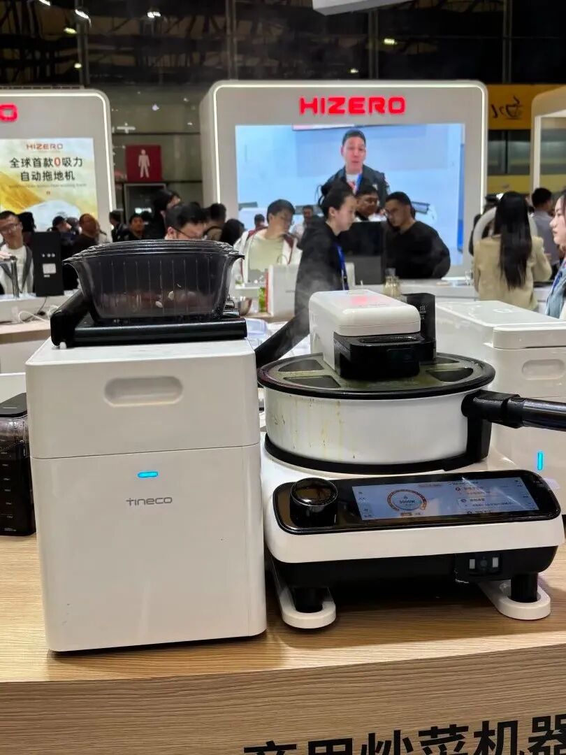 不过还是有一些AI功能创新,似乎并没有那么有必要。比如这款炒菜机,除了炒菜还增加了一个自动投放食材的功能,但最繁琐的备菜环节还是需要人工完成,还多了一个要洗的零件。