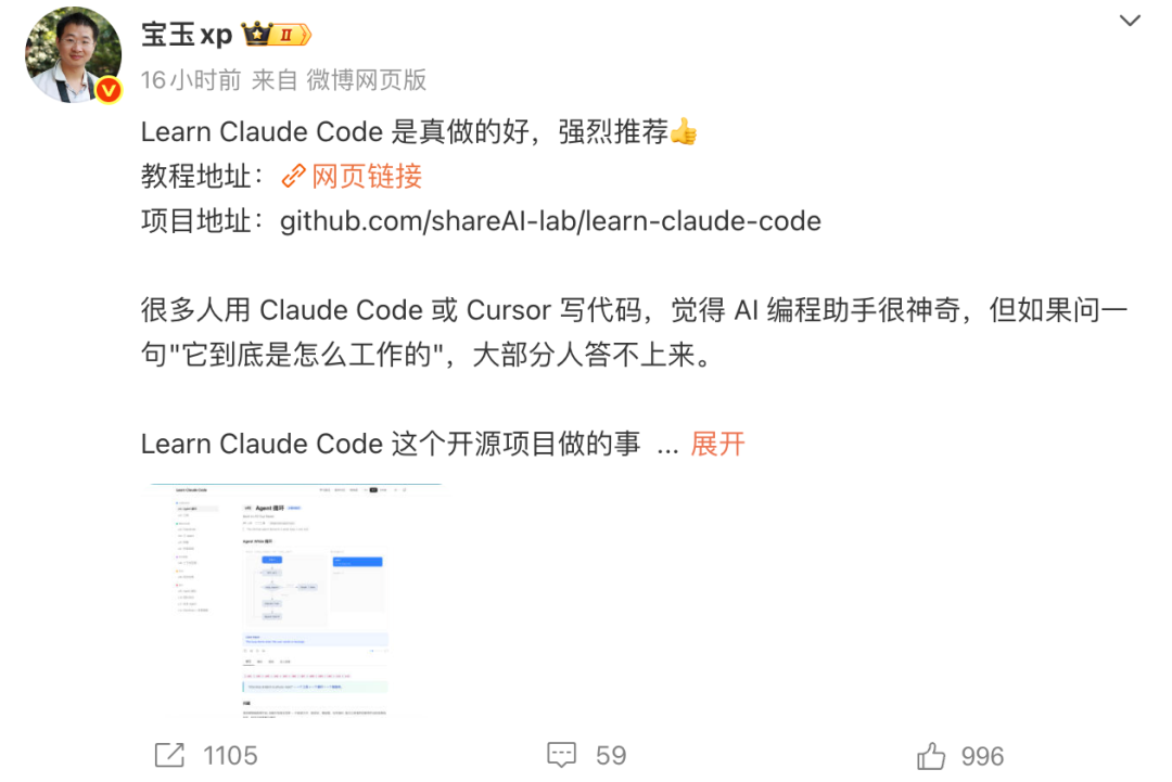 对想搞懂 AI Agent 内部原理的开发者来说,Learn Claude Code 可能是目前最好的从零到一的学习路径。不需要什么前置知识,有 Python 基础就能跟。