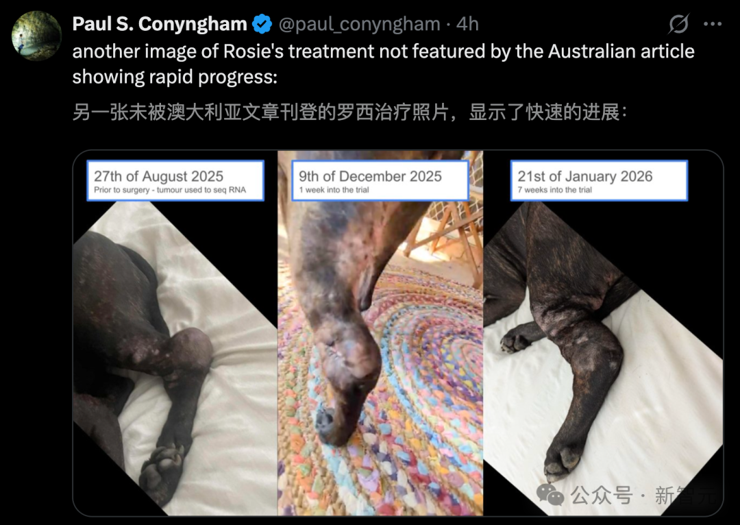 谁曾想,一位悉尼跨界大佬用AI手搓疫苗,逆天改命,救活了被确诊为「癌症晚期」的爱犬Rosie。