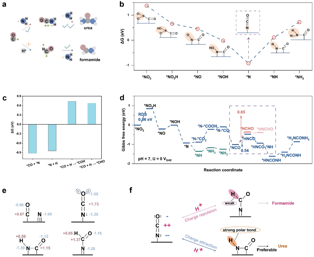 图1. C–N偶联产物中尿素与甲酰胺生成竞争机制