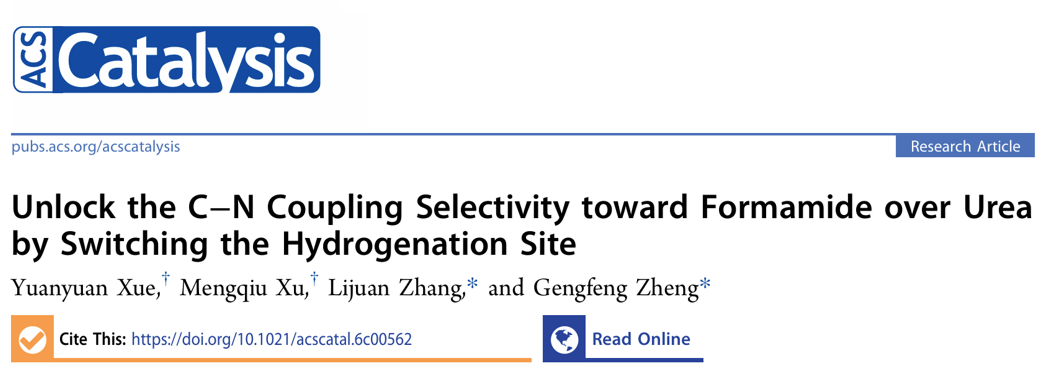近日,复旦大学先进材料实验室郑耿锋教授团队,通过结合恒电势计算、机器学习和实验验证揭示电化学C–N偶联生成非常规产物甲酰胺的关键机制。研究发现,氢化原子的类型差异(如C、N和O)对于调节尿素与甲酰胺之间的C–N偶联产物选择性至关重要。此外,*CO质子化为*CHO以及*CHO与*NH之间的偶联是形成甲酰胺的可行途径,据此建立两个描述符(ΔEads(*NH)和[ΔEads(*CHO) – ΔEads(*CO)]/ΔEads(*CO))。通过机器学习方法筛选了约60种合金催化剂,并选定铬掺杂铜作为电化学C–N偶联生成甲酰胺的最有效催化剂。经实验验证,该催化剂的甲酰胺产速高达35.0 mmol h–1 g–1,且可以有效抑制尿素的生成,这表明理论指导的电催化剂设计在实现非常规产物选择性方面具有潜力。相关成果以“Unlock the C–N Coupling Selectivity toward Formamide over Urea by Switching the Hydrogenation Site”为题,于2026年3月16日发表于ACS Catalysis。