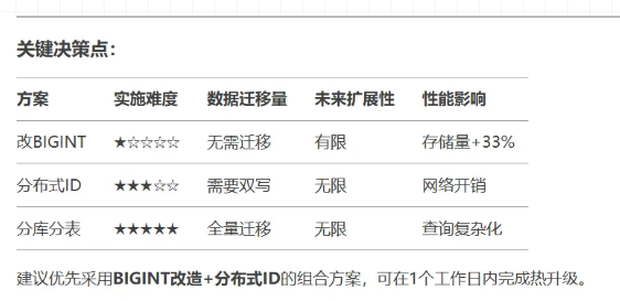 第一个是最简单粗暴的改BIGINT,不用迁移数据,但是会全程锁表。