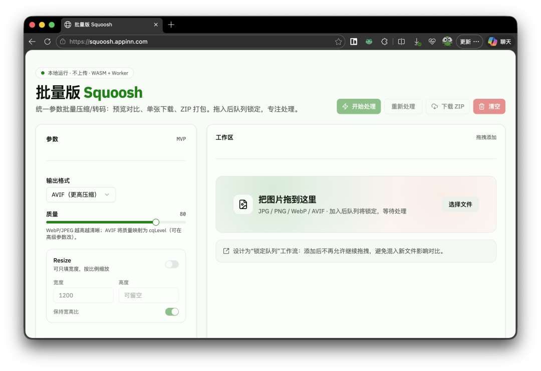 - • Squoosh 批量图片转换工具,Webp、Avif 等