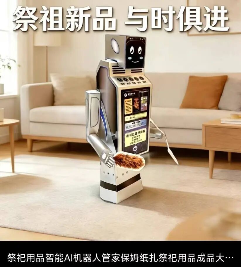 临近清明节,部分纸扎祭祀用品热销。在电商平台,有商家推出的“全球AI纸扎全家桶”和智能AI机器人管家保姆等创意祭祀纸扎用品,引发网友热议。